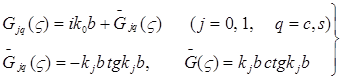 Здесь индекс j=0 относится к волновому уравнению в вакууме, а j=1 - к волновому уравнению в среде с потерями. Кроме того, величины e