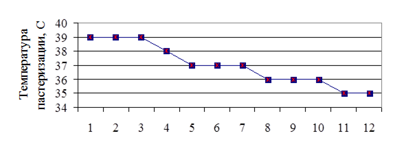 Рисунок 2 –Изменение температуры пастеризации в 1 опыте