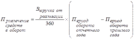 Коэффициент оборачиваемости активов = 68220:80205,5 на начало года и составляет 0,85, 59971:80205,5=0,74 на конец года, что говорит о снижении коэффициента на 0,11, следовательно, оборачиваемость активов снижается, что говорит о спаде производства. Затем определяется продолжительность одного оборота в днях: где оборачиваемость активов численно равна коэффициенту оборачиваемости текущих активов. Продолжительность оборота текущих активов равна 360:0,85 на начало года 423,5 и на конец года 360:0,74=486,5. Можно сделать вывод о том, что продолжительность оборота текущих активов увеличивается и для продолжения производственно-коммерческой деятельности хотя бы на том же уровне необходимо дополнительное привлечение средств в оборот, которое рассчитывается по формуле :