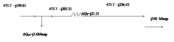 Ротб=0,7ּР =0,7ּ3732=2612.4. Мвт Qотб=0,4ּQ2 max=226.76 Мвар РАТ=Р - Ротб =3732 – 2612.4=1119.6 Мвт QAT=Q2 – Qотб=566.9 – 226.76 =340.14 Мвар SAT= 2 х АОЦТН (3 х 267000); (ХтΣ=19.9 Ом; ХнΣ=15,4 Ом; ΔQхх=5.6 Мвар) Определим необходимость синхронных компенсаторов: Максимальный режим: