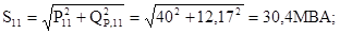 По полученным данным выбираем следующие трансформаторы [2]: ПС №9 - 2*ТРДН - 25000/110, ПС №11 - 2*ТРНД - 40000/110, ПС №4 - 2*ТРДН - 25000/110, ПС №12 - 2*ТРДН - 16000/110, ПС №3 - 2*ТРДН - 25000/110. На каждой ПС выбираем по 2 трансформатора, это связано с тем, что Pнагр больше 10МВт. Определяем сопротивления в схеме замещения трансформатора для п/ст 11. ТРДН - 40000/110