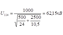 Определяем напряжение в середине линии в режиме передачи минимальной мощности