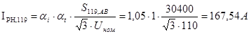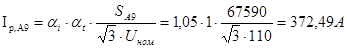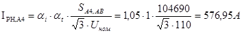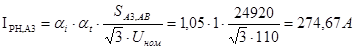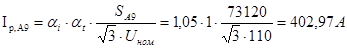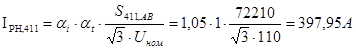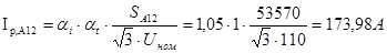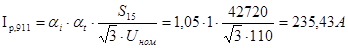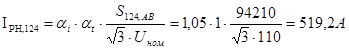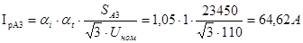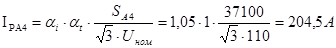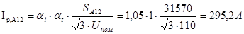Выбор на стороне высшего напряжения: Ток в нормальном и послеаварийном режиме: