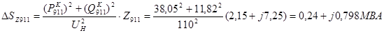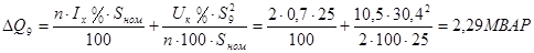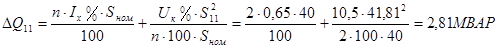 4.7 Расчёт потерь в трансформаторахПотери мощности в трансформаторах рассчитываются по следующим формулам [2]: