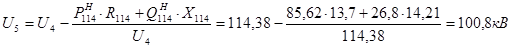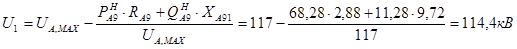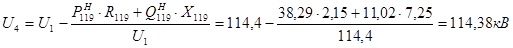 Определяем отклонение напряжения на этих шинах от номинального напряжения: