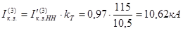 где К – коэффициент трансформации, равный отношению линейных напряжений сторон трансформатора: Ток в резисторе обусловлен трансформацией токов нулевой последовательности со стороны высшего напряжения трансформатора и равен