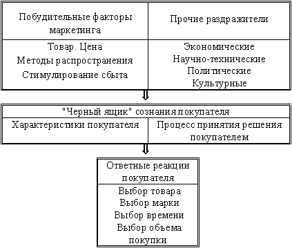 Рис. 6.1. Модель покупательского поведения Задача продавца – понять, что происходит в "черном ящике" сознания потребителя. На поведение покупателя при покупке товара большое влияние оказывают факторы культурного, социального, личного и психологического характера (рис. 6.2.). В своем большинстве это факторы, не поддающиеся контролю со стороны продавца, но их обязательно следует принимать в расчет.