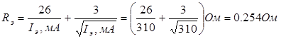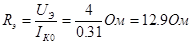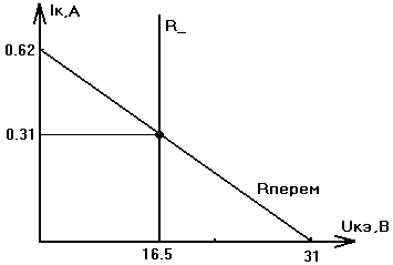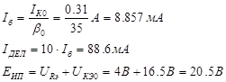 Uкэ0 = 16.5В, Iк0 =0.31А. Номинал резистора Rэ находится по закону Ома: