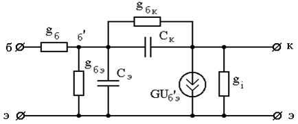 Рисунок 2.5 - Эквивалентная схема Джиаколетто. Для расчета используем справочные данные, выписанные выше [1]. Пересчитаем емкость коллекторного перехода на напряжение 10 В: