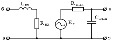 где S210 - коэффициент передачи предоконечного каскада. Расчет предоконечного каскада окончен. 2.5 Расчет входного каскада Схема входного корректированного каскада приведена на рисунке 2.13. Сигнал подается от генератора с емкостным выходом. У генератора по заданию активная составляющая выходного сопротивления равна бесконечности. Так как невозможно реализовать реальный усилительный каскад с таким параметром генератора, сопротивление Rг приняли равным 100 Ом.