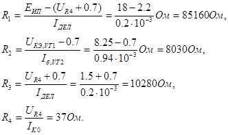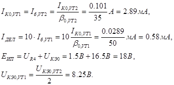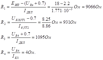 Рассчитаем номиналы схемы: