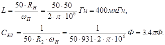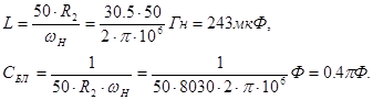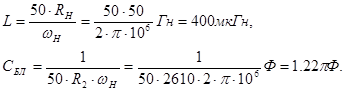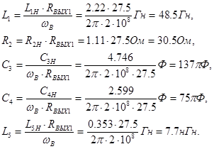 Номиналы реактивных элементов рассчитываются по формулам (2.25):