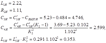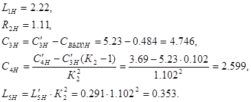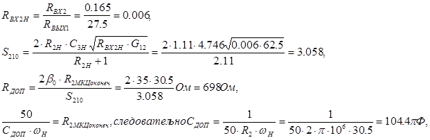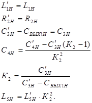 Тип транзистора в каскаде, предшествующему данной МКЦ, точно такой же, как и в выходном каскаде. Это имеет значение для параметров нормировки элементов МКЦ оконечного каскада. Для расчета нормированных значений элементов МКЦ, обеспечивающих заданную форму АЧХ с учетом реальных значений Cвых и Rн , следует воспользоваться формулами пересчета [1]: