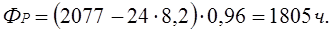 где ДР - число рабочих дней в году. ДП - число предвыходных и предпраздничных дней; tСМ - продолжительность смены, ч.; t1 - продолжительность смены в предвыходные и предпраздничные дни, ч. Принимаем: ДР -254 дн. (Стр., 35 [8]) ДП - 5 дн. (Стр., 35 [8]) tСМ -8,2 ч. (Стр., 35 [8]) t1 - 7,2 ч. (Стр., 35 [8])
