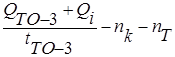 = где: nk , nт , nТО-3 , nТО-2 , nТО-1 - соответственно число капитальных, текущих ремонтов, технических обслуживании ТО-3, ТО-2 и ТО-1, данной марки трактора; Qk , QT , QTO -3 , QTO -2 , QTO -1 -соответственно наработка трактора от последнего капитального, текущего ремонтов и технических обслуживаний ТО-3, ТО-2 и ТО-1, данной марки трактора, л; Qi - планируемая годовая наработка, данной марки трактора, л; tk , tT , tTO -3 , tTO -3 , tTO -2 , tTO -1 - соответственно периодичность проведения капитального, текущего ремонтов и технических обслуживании ТО-3, ТО-2 и ТО-1, данной марки трактора, л; После вычисления округляем до целого числа и сравниваем с результатами, полученными в таблице 2 по каждой марке трактора. Текущие ремонты комбайнов и простых с.-х. машин проводятся по необходимости. Для учебных целей можно принять, что ежегодно на каждый комбайн проводится один текущий ремонт, с учетом того, что один текущий ремонт из всех вместе взятых приходится во время сезонных работ. Капитальный ремонт комбайнов проводится один раз за срок службы. В зависимости от наличия оборудования нефтесклада, его марки, число их ТО определяется согласно принятой периодичности. По усредненному методу [1] общая потребность в технических обслуживаниях каждой марки машины определяется по формуле: nTO