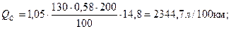 где qн – норма расхода топлива на 100 км пробега, л/100 км ( по табл. Б.13).