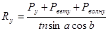де pволн величина рівна – 1 кПа; А'v у – площа поверхні палубного вантажу в поперечному напрямку по відношенню до судну над фальшбортом, м2 ; hв – висота хвилі, м; hс – відстань ц.т. цей площини від ватерлінії, м. Реакція найтовів від зусиль, направленні в площині шпангоута: