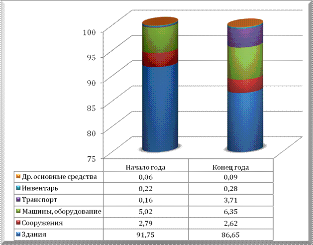 Рис. 17 - Динамика структуры основных фондов предприятия