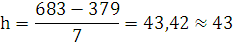 гдеm – число групп (всегда целое); n – число единиц в выборке, в нашем случае n= 50. Вычислим m: