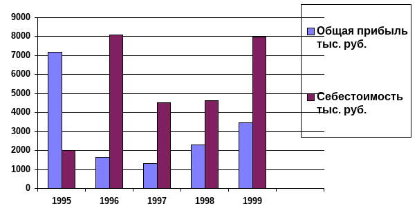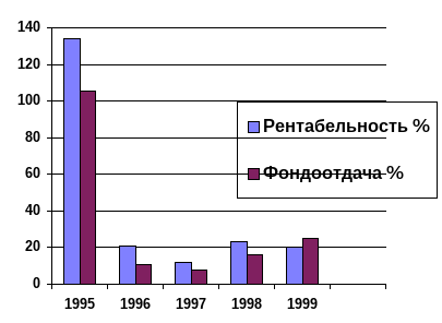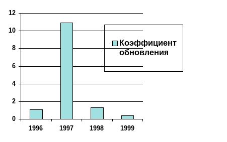 Из таблицы видно, что с 1995 по 1999 гг. происходило постоянное наращивание производственных мощностей, что позволило увеличить ассортимент и качество продукции. Причину низкой загруженности нужно искать в маркетинговой, сбытовой, закупочной деятельности, что не является темой данной работы. Коэффициент обновления и выбытия производственных фондов