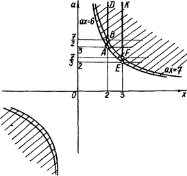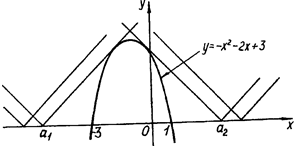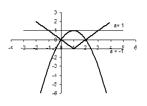 З рисунка 1.1.3 випливає, що при - розв’язків немає, при - розв’язки або , при - 4 розв’язки, при - 3 розв’язки, при - 2 розв’язки.