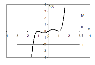 Ті значення , для яких відповідні горизонтальні прямі перетинають побудований графік в трьох точках і будуть шуканими. З рисунка видно, що .