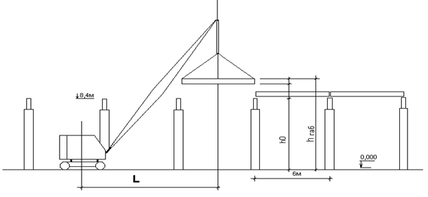 где ho - высота верхней грани ранее смонтированного элемента относительно поверхности перемещения крана (земли) hз - монтажный зазор. (0,3м) hэ - высота элемента
