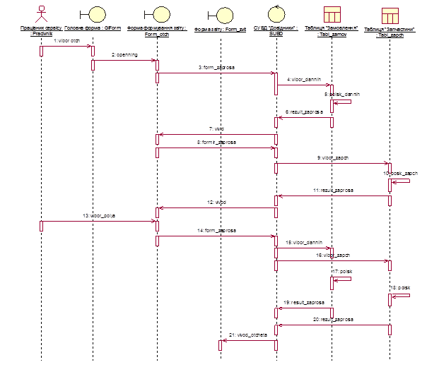 Рис.2.5 Діаграма послідовності для варіанту використання «Формування звіту запчастин»