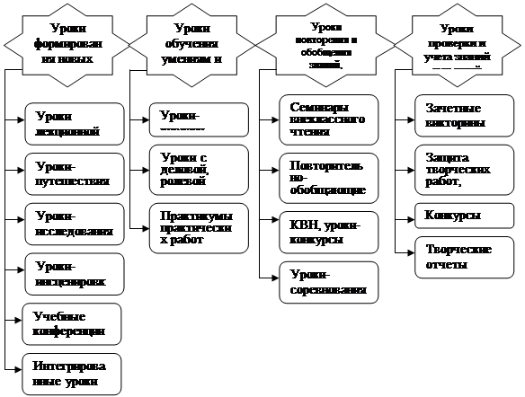 В основу организации и проведения нетрадиционных уроков положено несколько принципов (Страницы современной педагогики: диалог теории и практики. Под общей ред. С.М. Годника – Воронеж: 1998, с.174-175): 1. максимальное вовлечение обучающихся в активную деятельность на уроке; 2. не развлекательность, а занимательность и увлечение как основа эмоционального тона урока; 3. развитие функции общения на уроке как условие обеспечения взаимопонимания; 4. «скрытая» дифференциация обучающихся по учебным возможностям, интересам, способностям; 5. использование оценки в качестве формирующего (а не только результирующего инструмента). Помимо принципов исследователи относят к весьма значимым условиям организации периоды подготовки и проведения нетрадиционных уроков. Выделяют три периода: подготовительный, собственно урок и его анализ. В подготовке к уроку обучающиеся принимают активное участие, которое может выражаться в подготовке сообщений, составлении вопросов, кроссвордов, викторин, изготовлении необходимого дидактического материала. На самом уроке обучающиеся изучают новый материал или систематизируют ранее полученные знания в различных «нестандартных» формах организации мыслительной активности. На этапе анализа проведенного урока исследователи рекомендуют оценивать не только результаты достижения образовательных, воспитательных и развивающих задач, но и картину общения – эмоциональный тонус урока. Развитие личности обучающихся зависит не только от их включения в деятельность, а, прежде всего, от уровня их активности в рамках этой деятельности. Проведение нестандартных уроков в сочетании с классическим уроком и учетом ряда других факторов (положительный эмоциональный фон, характер общения и др.), максимально способствует развитию учебно-познавательной активности обучающихся. Нетрадиционные уроки способствуют формированию мировоззрения, практических умений и навыков самообразования, все это способствует развитию продуктивного мышления, познавательной активности, развитию волевых качеств личности, памяти, развивает способность выражать свои мысли. Развиваются такие личностные качества, как аккуратность, ответственность, внимательность, целеустремленность, дисциплинированность. Эти качества имеют большое значение в успешном формировании будущего специалиста-профессионала, в развитии его профессиональной самостоятельности. Развитие современного производства, высокие темпы научно-технического процесса, требуют, чтобы учащиеся-выпускники профессиональных училищ имели такой уровень квалификации, который позволял бы им работать в постоянно изменяющихся условиях современного производства. Поэтому они должны обладать такими умениями и навыками, которые позволили бы, в зависимости от условий конкретной работы, свободно и легко перестроиться в соответствии с предъявленными требованиями. Это зависит, прежде всего, от организации учебного процесса, от применяемых форм и методов обучения учащихся. Формирование политехнических знаний, умений и навыков происходит одновременно под воздействием как общеобразовательных дисциплин, таки профессиональной подготовки. Каждый из этих познавательных процессов самостоятелен, но действуют они, взаимно обогащая друг друга. Именно активное применение в учебном процессе 