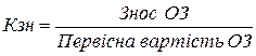 Таким чином, відбулося скорочення частки коштів інвестованих у ОЗ, що свідчить про зростання обсягів виробництва на підприємстві, в результаті чого кошти були інвестовані у виробництво. Коефіцієнт зносу основних засобів: показує рівень фізичного та морального зносу ОЗ. Нормативне значення: зменшення.