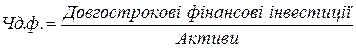 Відбулося незначне зменшення основних коштів (на 0,003). Частка довгострокових фінансових інвестицій в активах: показує частку фінансових портфельних інвестицій у валюті балансу; зменшення. Нормативне значення: збільшення за умов доходів від фінансових інвестицій.