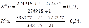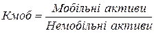 Таким чином, відбулося відбулося зростання частки оборотних виробничих активів у валюті балансу на 0.01, що може свідчити про майбутнє зростання виробництва. Коефіцієнт мобільності активів: показує скільки коштів припадає на 1 одиницю не обігових; потенційна можливість перетворення активів ліквідні кошти.Нормативне значення: збільшення, рекомендований рівень Км об=0,5.