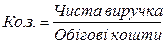 Коефіцієнт оборотності матеріальних запасів. Нормативне значення: збільшення за періоди. Розраховується за формулою: