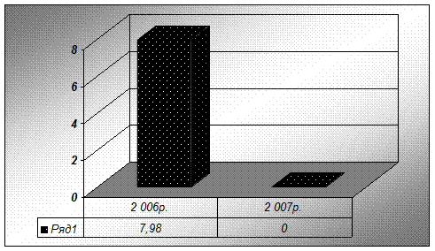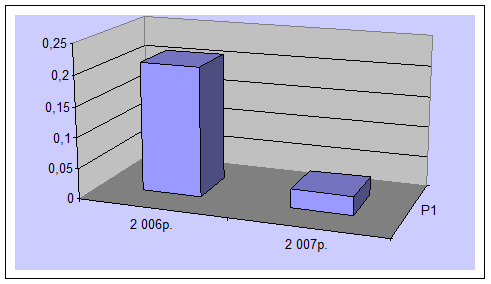 Рис. 2.14 - Динаміка коефіцієнта реінвестування ТОВ «РОСКО» за 2006-2007 рр. Таким чином, на підприємстві відбувається зменшення власного капіталу за рахунок збиткової діяльності підприємства. Рівень капіталізації зменшився на 7,98 грн. Коефіцієнт стійкості економічного зростання: показує темп збільшення власного капіталу за рахунок чистого прибутку. Нормативне значення: збільшення.