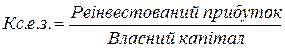 Коефіцієнт реінвестування: показує скільки чистого прибутку капіталізовано і спрямовано на збільшення власного капіталу. Нормативне значення: збільшення в межах, що не суперечить бажанню акціонерів отримувати підвищенний дивіденд.