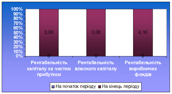 Рентабельність власного капіталу має відємне значення, що говорить про нефективну діяльність підприємства. Рентабельність виробничих фондів: показує скільки чистого прибутку припадає на 1-цю вартості виробничих фондів. Нормативне значення: збільшення.