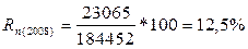 де IХ - індекс інтегрального показника - індикатора фінансового стану підприємства; kК - індекс коефіцієнта поточної ліквідності (відношення поточної фактичної величини коефіцієнта до його критичної (нормативної) величини, що дорівнює 1,5; kD - індекс частки позикових коштів у пасивах підприємства (відношення поточної частки позикових коштів до її критичної (нормативної) величини, що дорівнює 0,6); kR - індекс показника валової рентабельності активів підприємства. Показник валової рентабельності активів підприємства обчислювався за такою формулою: R= Індекс показника валової рентабельності активів підприємства розраховувався за формулою: