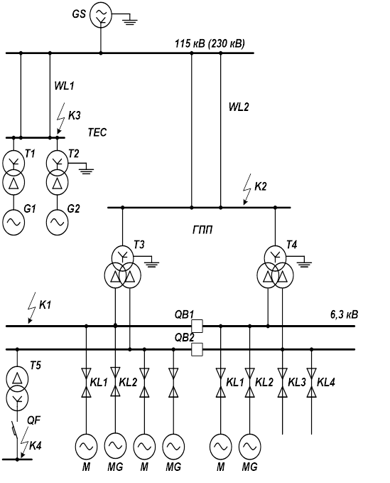 1 РОЗРАХУНОК СТРУМІВ ТРИФАЗНОГО КОРОТКОГО ЗАМИКАННЯ