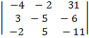 = (-4)(-5)(-11) + (3)(5)31 + (-2)(-2)(-6) – (-2)(-5)(31) – (-4)(5)(-6) – 3(-2)(-11) = - 220 + 465 – 24 – 310 – 120 – 66 = - 275