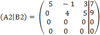 Приведем матрицу (А|B) к ступенчатому виду. Оставив без изменения первую строку и умножая её соответственно на -3, -5, 4, прибавим полученное к строкам 2, 3 и 4