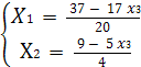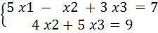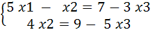 Так как эта система состоит из двух уравнений, но содержит три переменные, одну из переменных можно выбрать произвольно, например, положим х3 . Перенося слагаемые с х3 в правую часть, получим систему