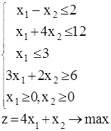 Требуется найти х1 , х2 , х3 , х4 , минимизирующие целевую функцию и удовлетворяющие ограничениям (1)–(4).