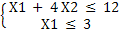 4 X1 - X2 ≤ 2 B(0,3) 3 C(3, 2 1 D(3,1) X1 + 4 X2 ≤ 12