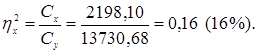 На підставі даних таблиці визначаємо загальну Cy , факторну Cx , залишкову Cz дисперсії за формулами:
