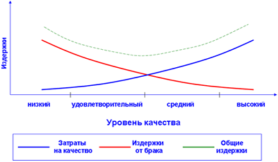 При полном соответствии уровня качества потребностям потребителя, когда они удовлетворяются с наименьшими затратами и для потребителя и для производителя, – оптимальный вариант, поскольку сумма затрат на изготовление и эксплуатацию минимальна. Таким образом, оптимальный уровень качества