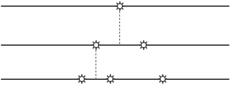 Произвольный определитель порядка п можно выразить через п миноров порядка п — 1, каждый из которых в свою очередь выражается через п — 1 миноров порядка п — 2. Удобство трехдиагональной формы в том, что на каждом шаге все миноры, кроме двух, оказываются равными нулю. В результате исходный определитель представляется последовательностью полиномов fm (l) = (am - l ) fm-1 (l) – b2 m fm -2 (l). Приняв f0 (l) = 1 и f1 (l) = a1 - l при r = 2, .... п, получим совокупность полиномов, известную как последовательность Штурма и обладающую тем свойством, что корни полинома fj (l) располагаются между корнями полинома fj +1 (l). Поэтому для f1 (l) = a1 — l можно утверждать, что значение lК = а1 заключено между корнями полинома f2 (l) == (a2 — l) (a1 — l) —b2 2 . Это облегчает итерационное определение корней полинома, так как если известны границы интервалов, в которых лежат значения корней полинома, то их можно найти методом половинного деления. Так последовательно находят корни всех полиномов, и последний из них fn (l) дает все искомые п собственные значения. Эту процедуру можно проиллюстрировать графически (см. рис. 3). Последовательность Штурма обладает еще и таким свойством: для любого значения b , при котором fn (b ) <> 0, число собственных значений матрицы A, больших b, равно числу изменений знака последовательности 1, f1 (b ), f2 (b ), … , (1)n fn (b). Если целое число, равное числу изменений знака, обозначить через V(b), то число собственных значений в интервале действительных чисел [b, с] будет равно V(b)—V(c).