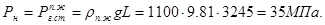 . В интервале 2962-3240м находятся четыре продуктивных пропластка. Расчет колонны производим по нижнему пропластку, который залегает в интервале 3225-3240м (h=15м). Давление в пласте на момент начала разработки Герметичность колонны будет определяться опрессовкой, проводимой продавочной жидкостью с плотностью Эксплуатация заканчивается при Основными расчётами обсадных колонн являются расчёты на наружное и внутреннее избыточное давление, расчёт на растяжение. Расчёт на внутреннее давление, действующее на колонну. Определим давление на устье при условии, что скважина заполнена пластовой жидкостью: