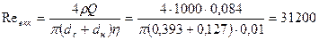 Здесь диаметр скважины dс для упрощения расчетов на всем протяжении ствола принят равным диаметру долота. Определим расход жидкости, необходимый для очистки забоя от шлама, по формуле (4.2):