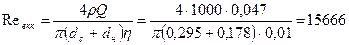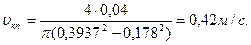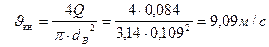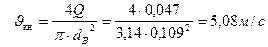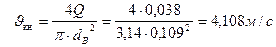 4. Проверочный расчет расхода и плотности промывочнойжидкости в ранее пробуренных скважинах при отработке долот.Для роторного способа 0-60м. В исходных данных принято, что согласно опыту бурения скважин хорошая очистка кольцевого пространства от шлама осуществляется при скорости восходящего потока промывочной жидкости υп = 0,48 м/с. по формуле (4.1):