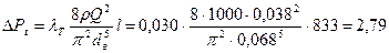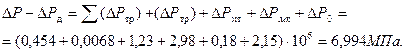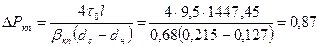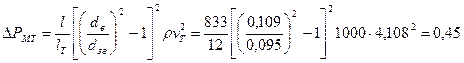 Рассчитаем потери давления внутри ТБПК и УБТ по формуле (6.7):